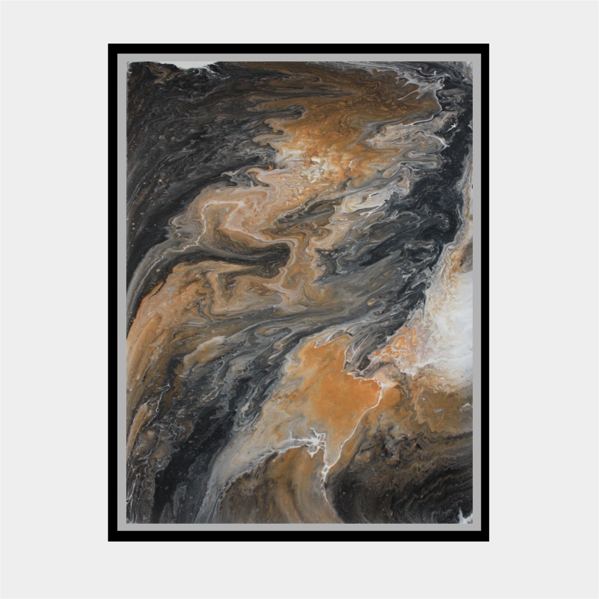 Gold and Black are amongst my favourite paint colour combinations and I hope you agree that Golden Haze lives up to its name. Just the right amount of each colour with a hint of white in this Acrylic Pour has contributed to its interesting and mysterious shapes.